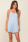 A ribbed knit romper featuring a v-neckline and cami straps.