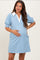 Light Blue Striped Collared Puff Sleeve Maternity Dress