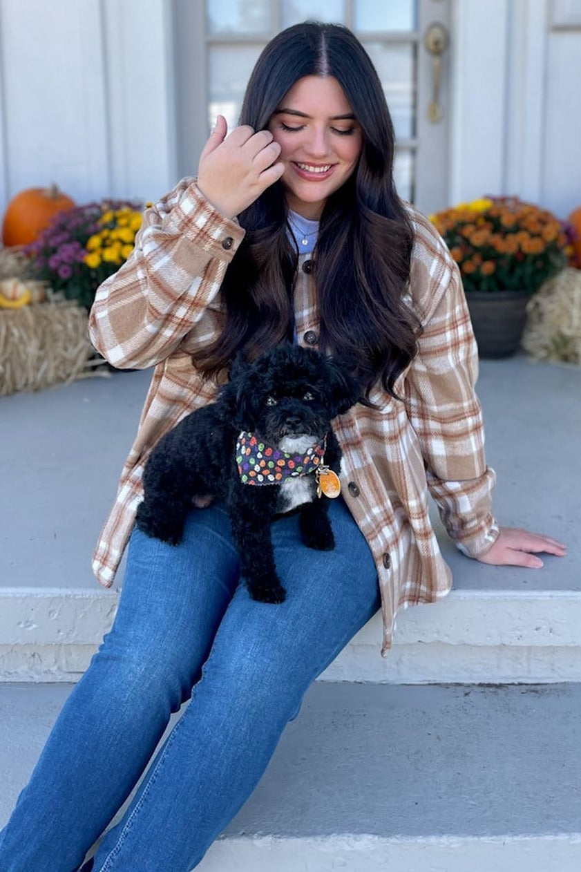 Light Mocha Plaid Front Pocket Shacket