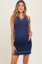 Light Navy Floral Sweetheart Neckline Maternity Midi Dress