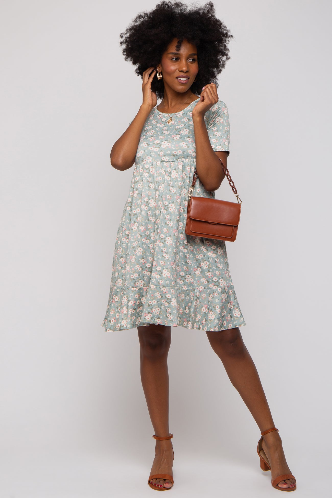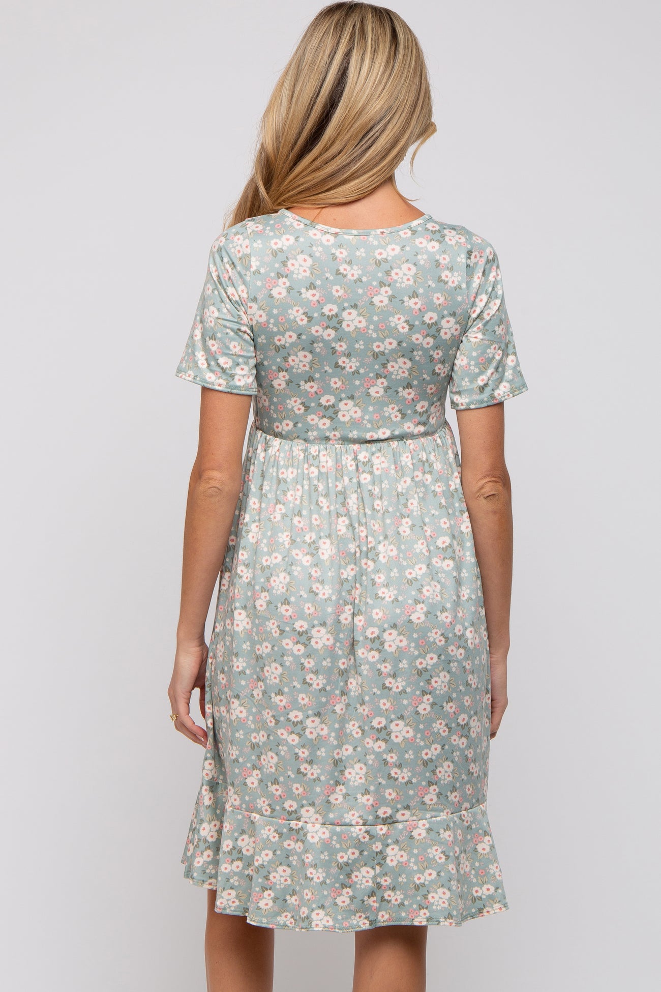 Light Olive Floral Knit Short Sleeve Maternity Dress