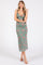 Light Olive Floral Mesh Ruched Sleeveless Midi Dress