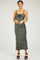Light Olive Floral Paisley Velvet Tie Satin Maternity Midi Dress