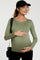 Light Olive Knit Long Sleeve Round Hem Maternity Top