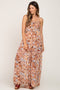 A solid knit maternity romper featuring a rounded neckline and knotted straps.