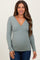 Light Olive Ribbed V-Neck Long Sleeve Maternity Top