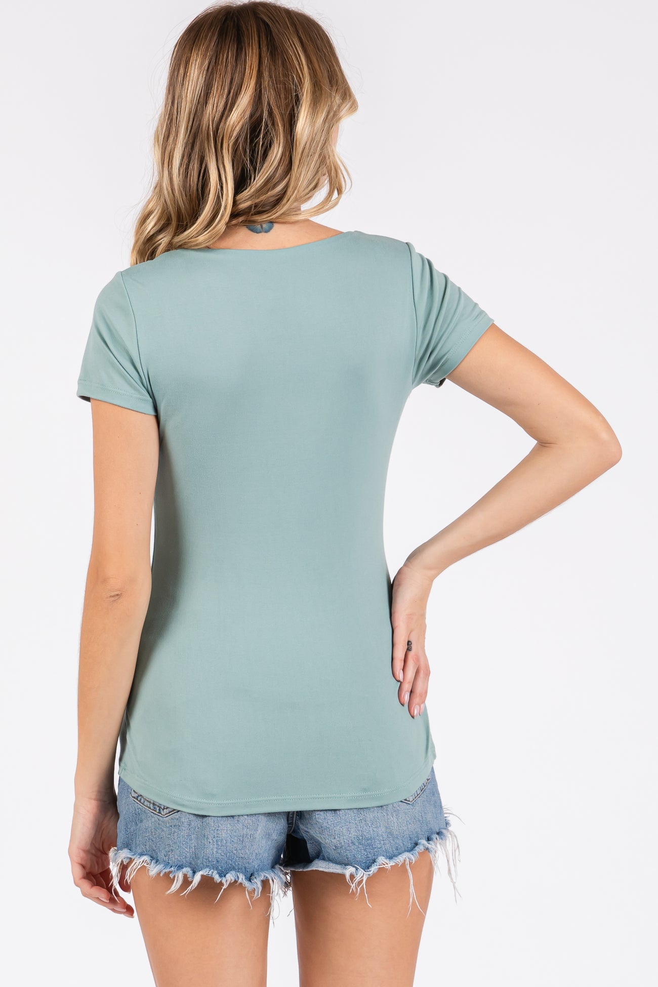 An ultra soft knit top featuring a square neckline, short sleeves and double lining.