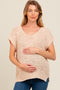 Light Olive Striped Front Pocket Maternity Shirt