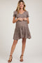 Light Olive U Notched Bubble Short Sleeve Maternity Dress