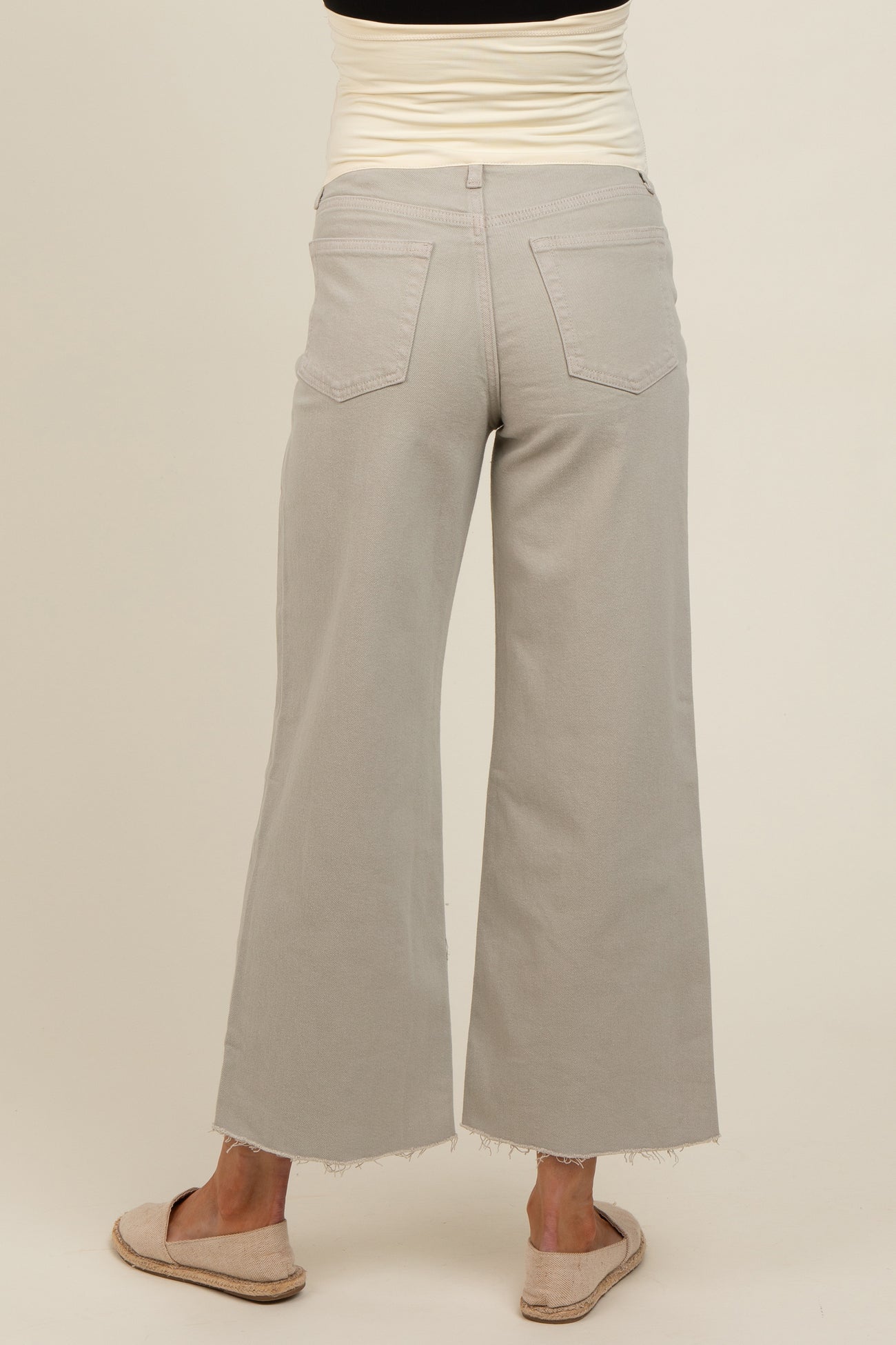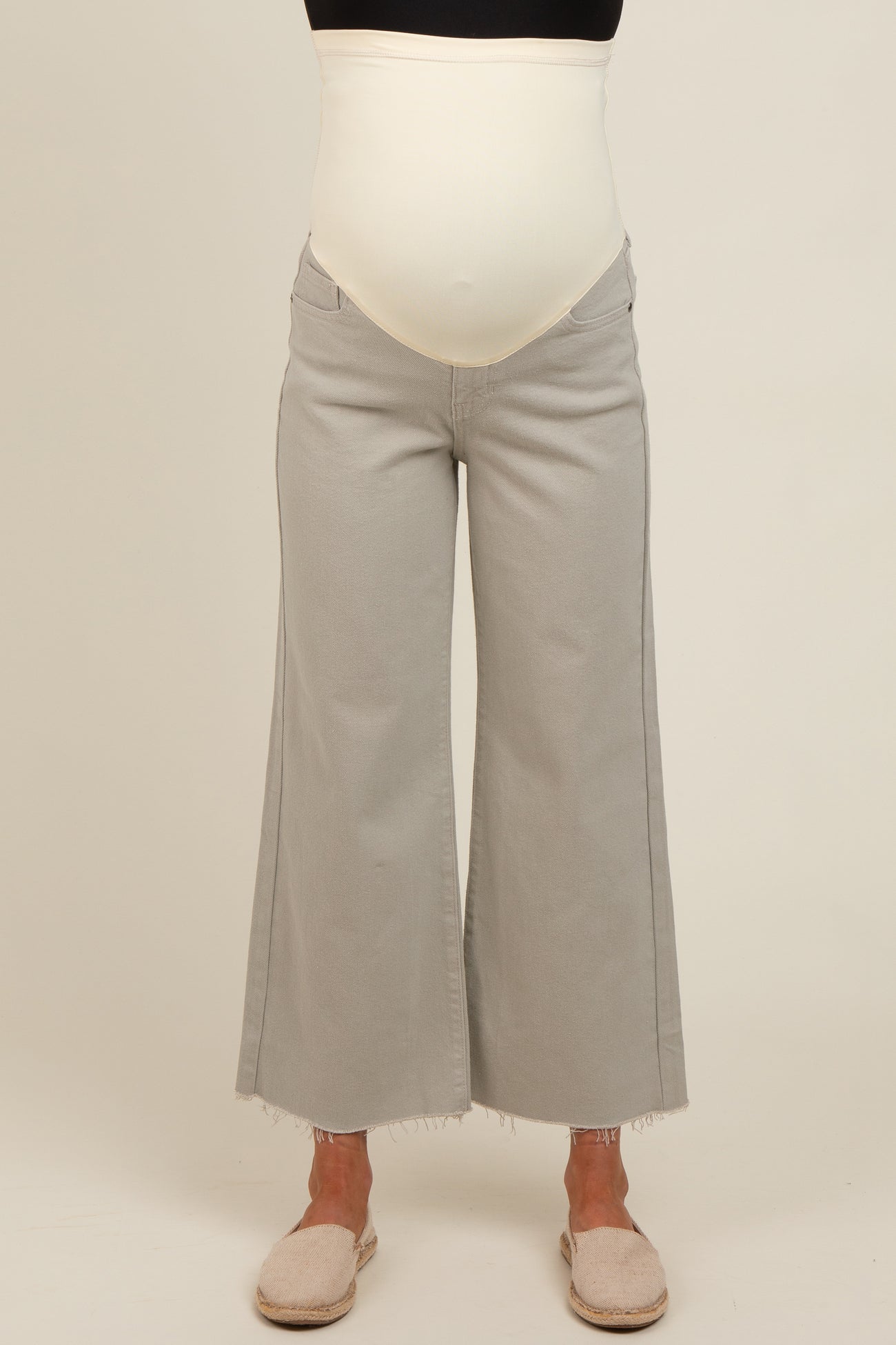 Light Olive Wide Leg Raw Hem Maternity Jeans