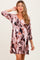 Light Pink Printed V-Neck Front Tie 3/4 Sleeve Maternity Mini Dress