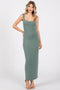 A rib knit tank top with a rounded neckline and ruched sides with adjustable drawstrings.