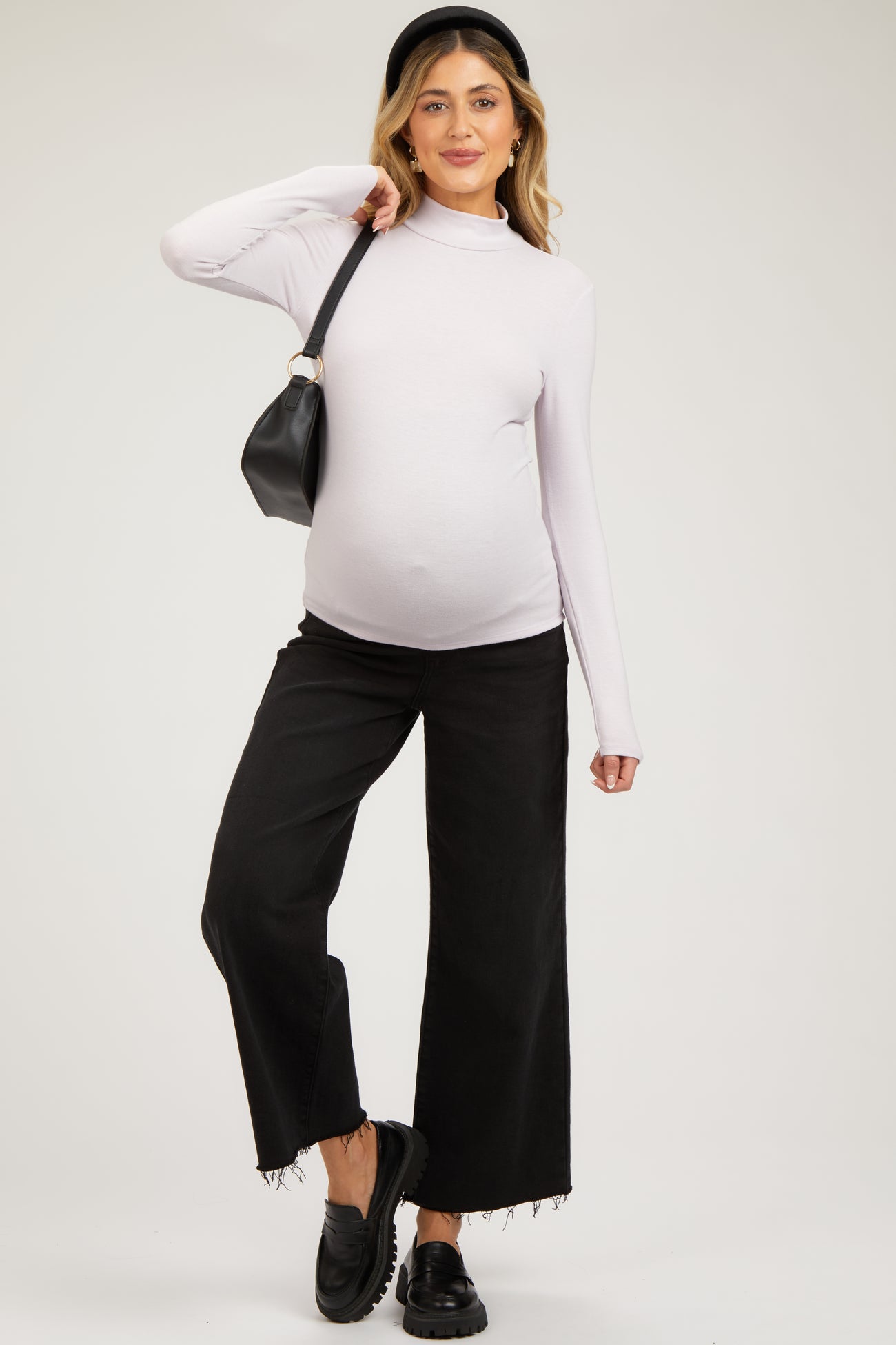 A solid soft maternity top featuring a turtle neckline and long sleeves.