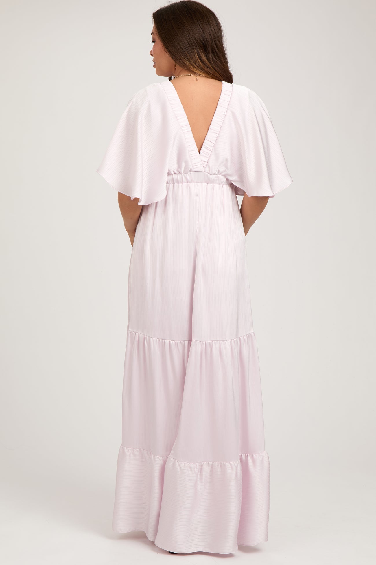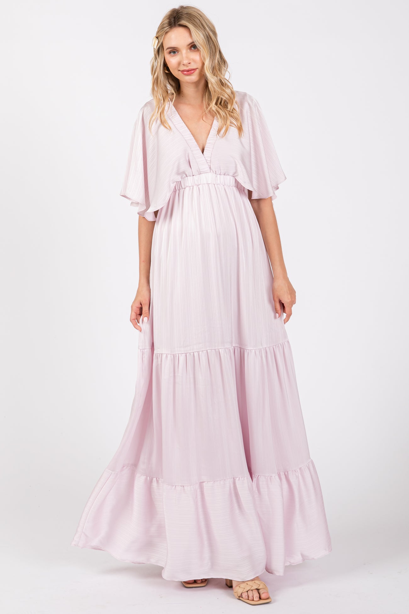 Light Pink V-Neck Flutter Sleeve Tiered Maternity Maxi Dress