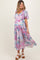 Light Pink Watercolor Floral Flutter Sleeve Maternity Midi Dress