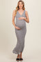 Light Taupe Floral Puffed Sleeve Maternity Midi Dress