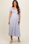 Details A textured maternity midi dress featuring a v-neckline, half-length sleeves, and a tiered skirt. Dress is lined 3/4 of the way down. Content + Care