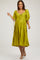 A solid hued maternity midi dress featuring short sleeves, a tiered body and a self-tie neckline.
