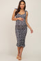A solid hued maternity top featuring a button accent on front, a tie accent on hemline, a v-neckline, and short sleeves.
