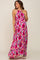 Magenta Floral Halter Shirred Maternity Maxi Dress
