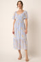 A floral maxi with an adjustable halter top, a straight neckline, and a shirred elastic waist.