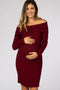 Magenta Solid Off Shoulder Maternity Fitted Dress