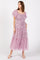 Mauve Floral Lined Smocked Tulle Midi Dress