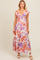 Mauve Floral Ruffle Accent V-Neck Maxi Dress