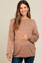 A solid maternity cardigan with an open front and two front pockets in a long length style.