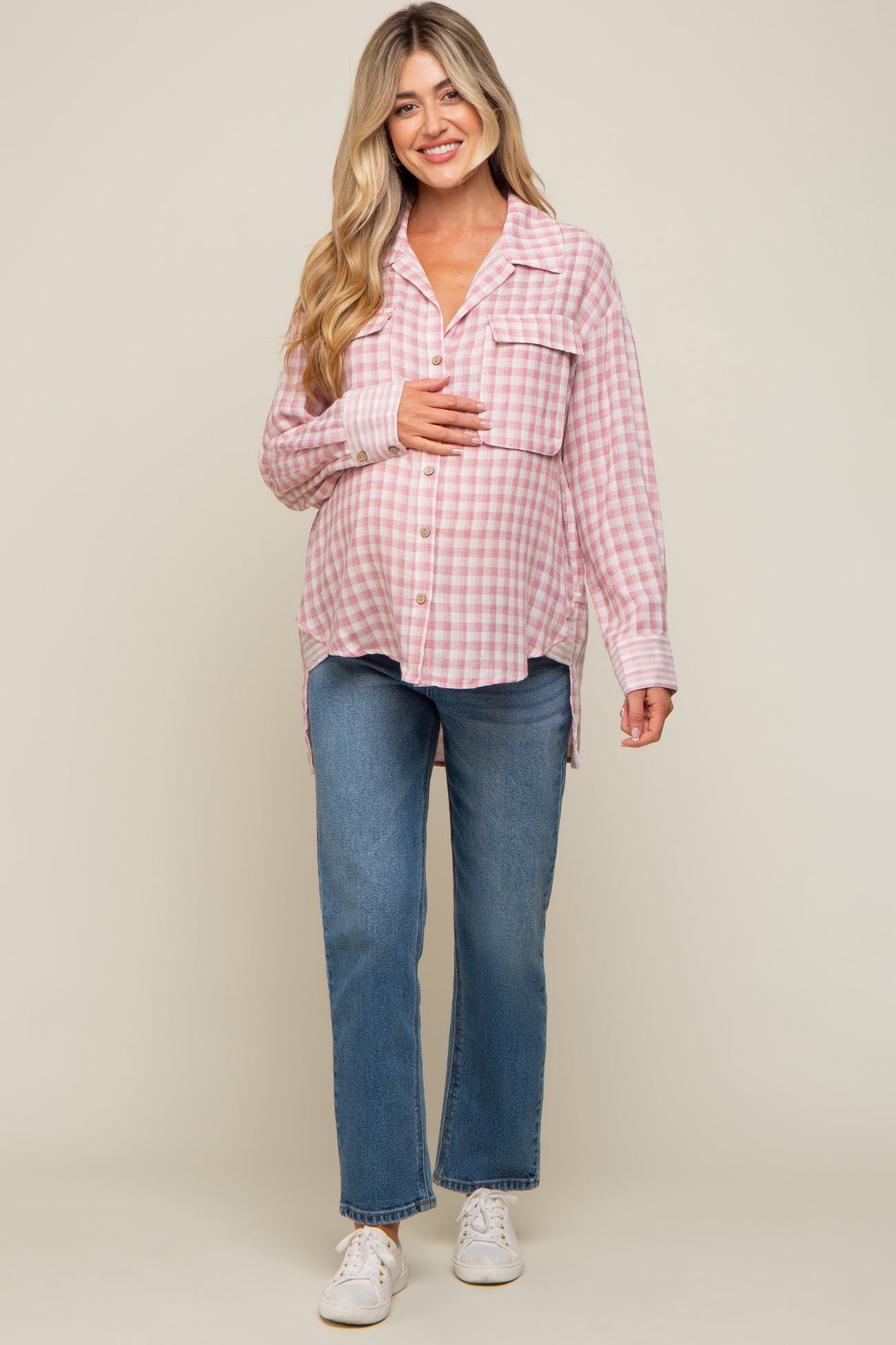 Mauve Plaid Front Pocket Hi-Low Maternity Top