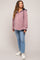 A soft fleece maternity shacket with a collar, front pockets, front functioning buttons, long sleeves and a curves hem. The waffle knit contrast fabric is featured on the hoodie, the sleeves, and the bottom hem.