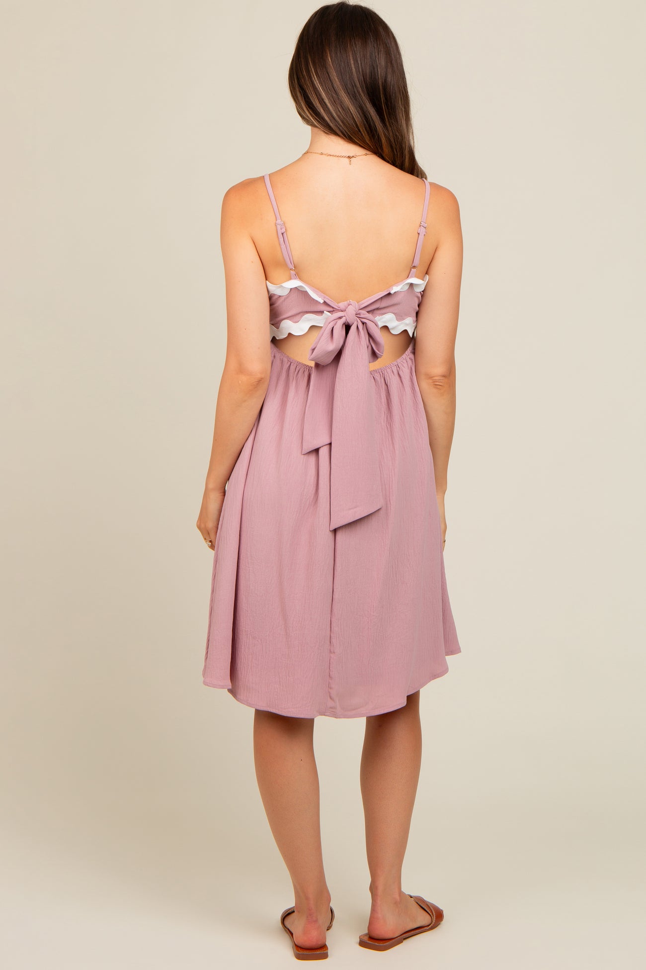 Mauve Wavy Trim Cutout Tie Back Maternity Dress