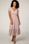Details A plus maxi dress, featuring long sleeves with button closures, a wrap v-neckline, a cinched elastic waistline, a pleated back detail, a sash tie, and double lining to prevent sheerness. Content + Care
