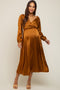 A floral print chiffon maternity dress featuring ruffle sleeves, a rounded neckline, ruffle tiers and double lined.