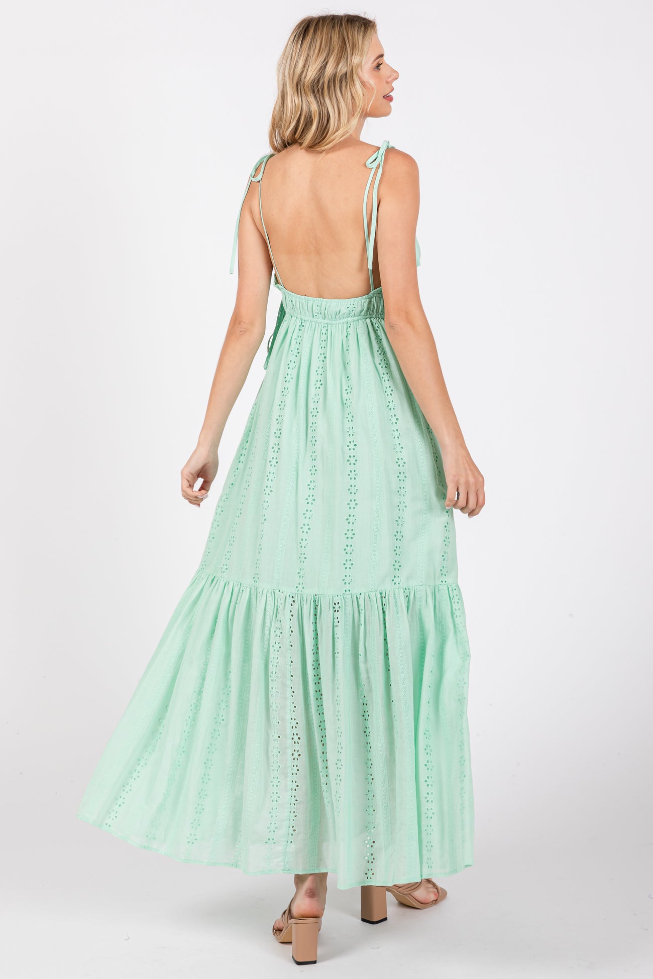 Mint Green Floral Eyelet Shoulder Tie Dress