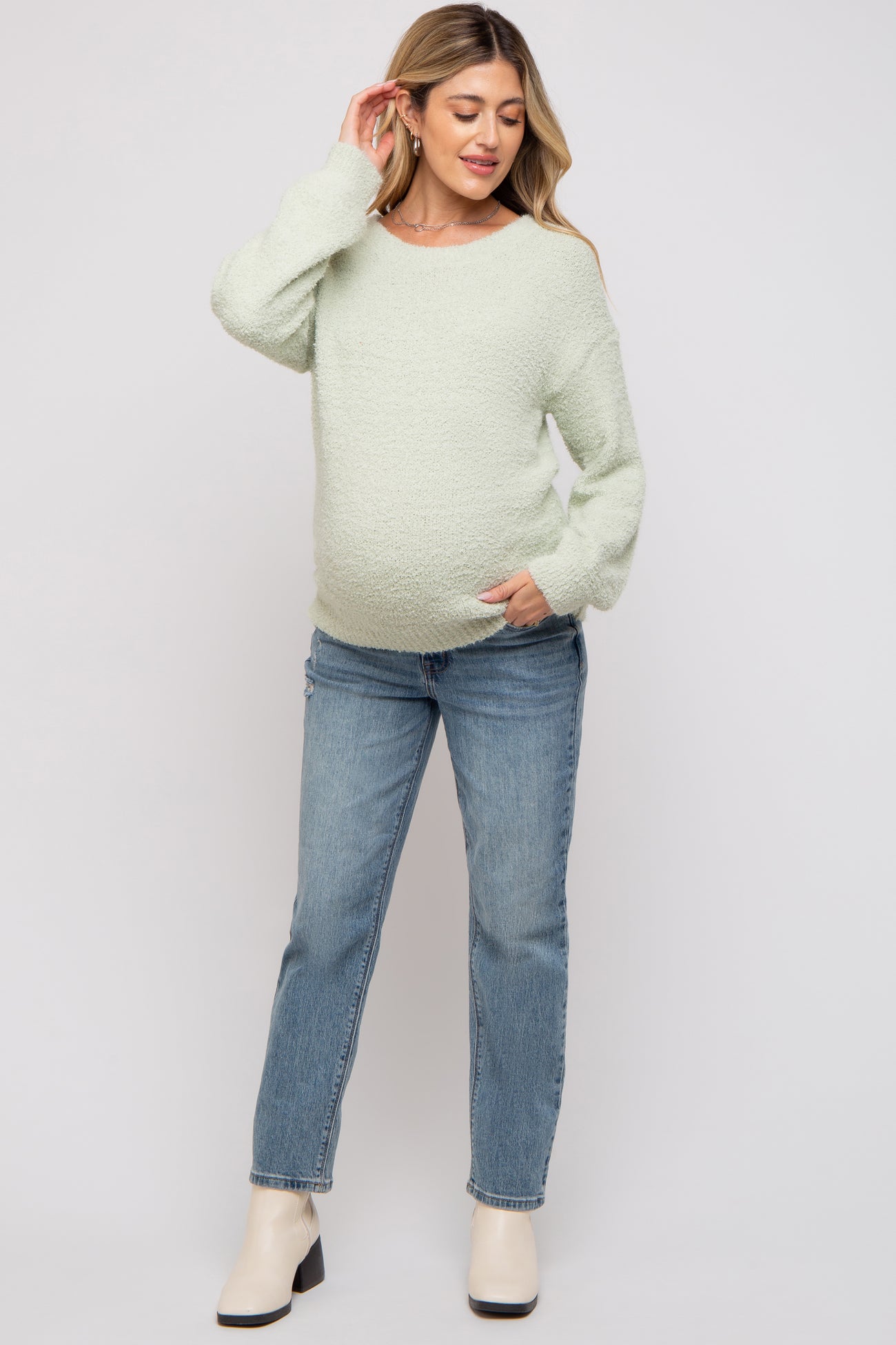 Mint Green Fuzzy Soft Knit Maternity Sweater