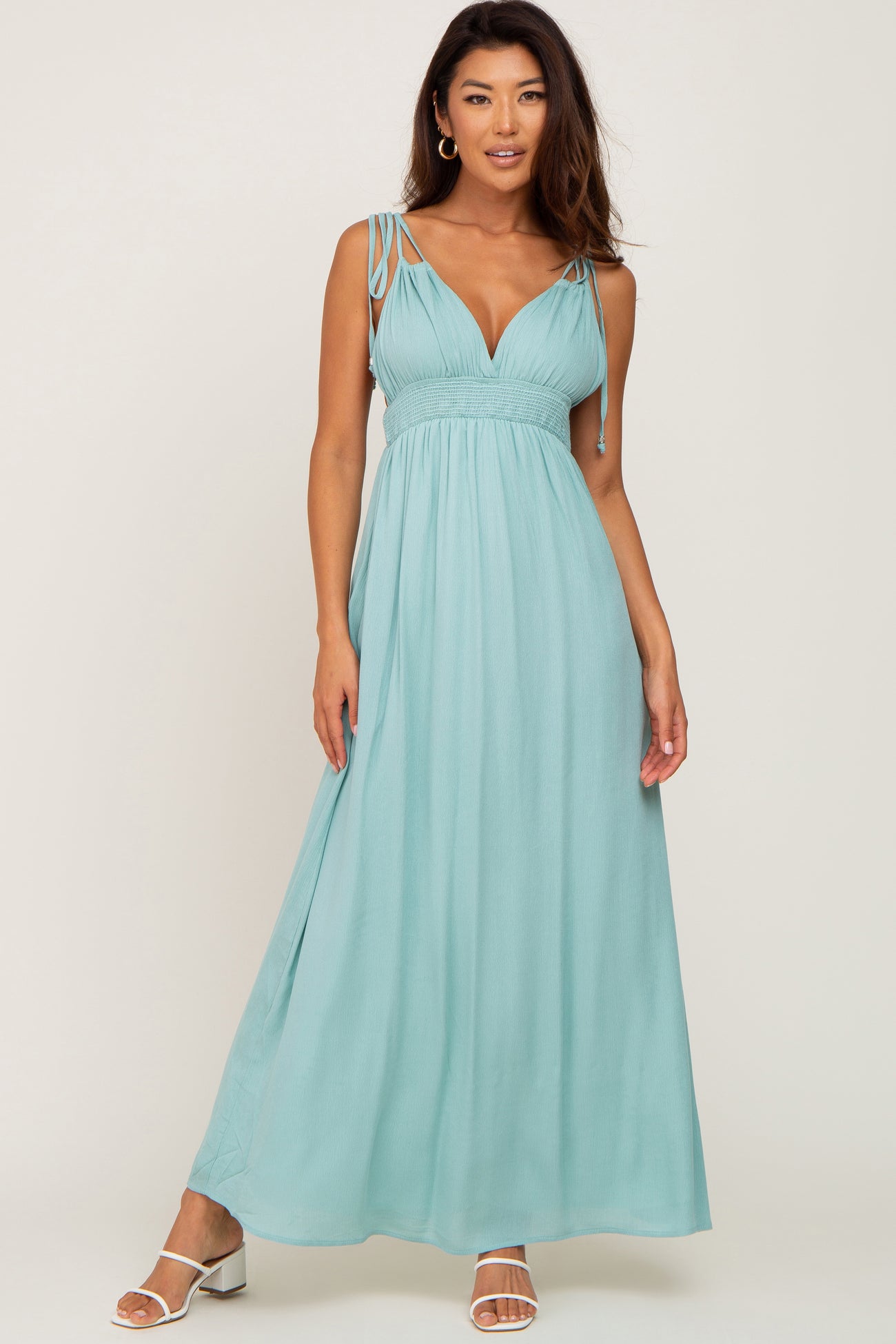 Mint Green Shoulder Tie Open Back Maternity Maxi Dress