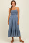 Mint Smocked Bodice V Neck Flutter Sleeve Maternity Dress