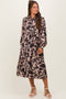 Mocha Floral Pleated Back Cutout Maxi Dress