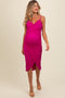A floral maternity maxi featuring a straight neckline, adjustable straps, a tiered skirt, and a back zipper closure. Dress is partially lined.