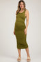 Mocha Ribbed Sleeveless Side Slit Maternity Dress