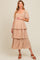 Mocha Smocked Body Ruffled Tiered Maternity Midi Dress