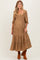 Mocha Smocked Ruffle Detail Tiered Maternity Midi Dress
