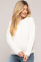 A striped maternity sweater featuring a rounded neckline and long drop shoulder sleeves. Ribbed along the neckline, sleeve cuffs, and bottom hem.