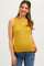 A sleeveless knit maternity top featuring crochet knit details and a rounded neckline.