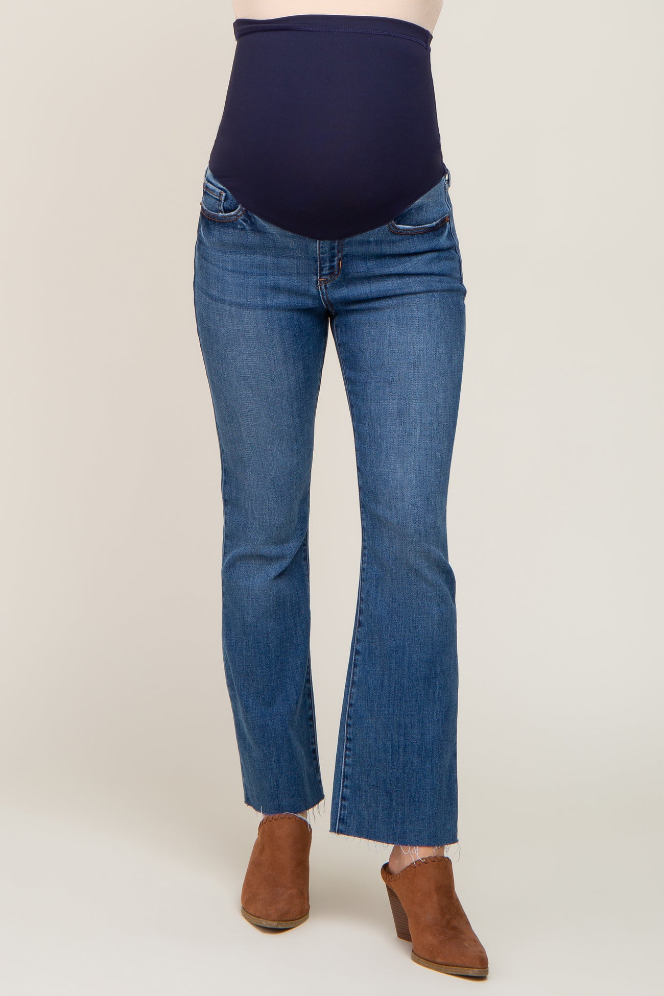 Navy Blue Bootcut Raw Hem Maternity Jean