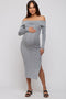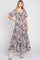 Navy Blue Floral Square Neck Short Puff Sleeve Maxi Dress