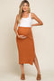 Details A solid hue maternity mid dress with long semi sheer sleeves, a smocked bodice, a v-neckline, and a tiered skirt. Dress is lined. Content + Care