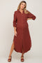 A floral print off shoulder maternity maxi dress with flounce ruffle detail on top.