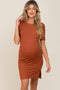 A floral maternity maxi dress featuring a v-neckline, a pleated waist, a back tie, an elastic back waist, and a side slit. Dress is fully lined.